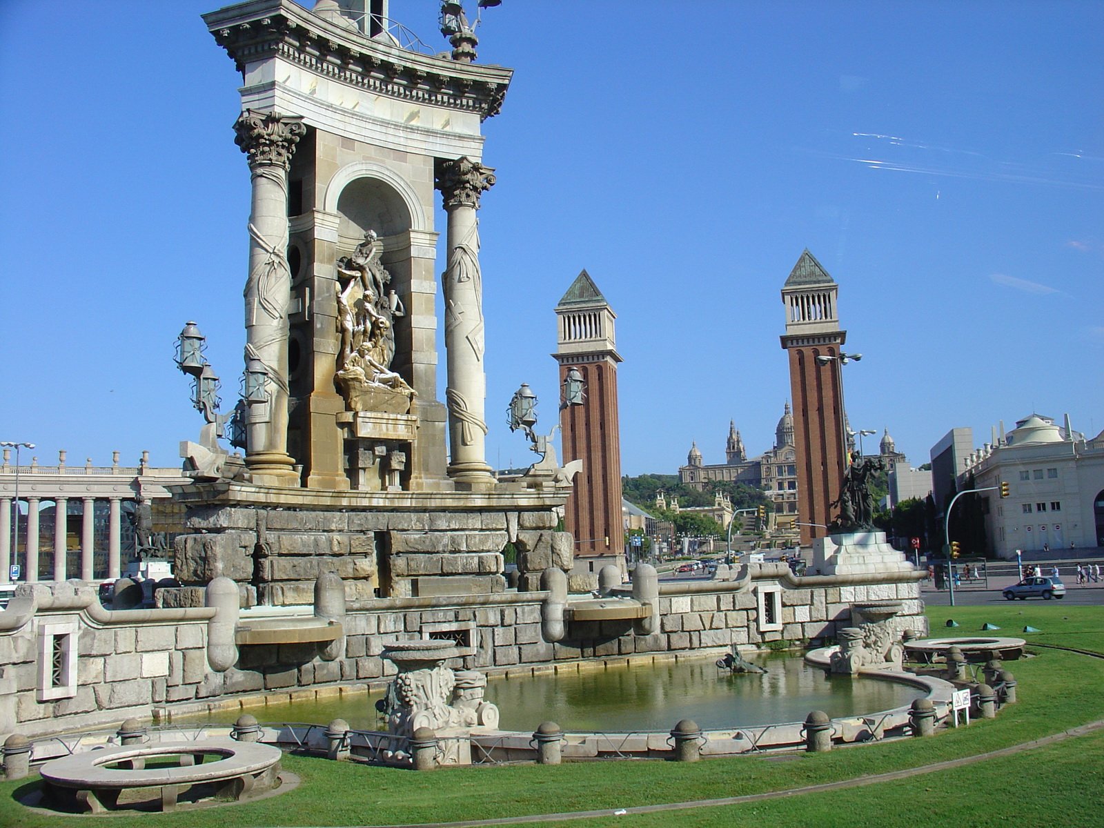 Вообще от фонтана сложилось следующее мнение, что все 3 части работают практически независимо друг от друга. Т.е. свет переключается по-своему, музыка играет все равно какая, а вода завязана на музыку точно также как и в проигрывателе WinAmp, где берется некоторый параметр звука, преобразуется и от получившегося значения зависит выход, в данном случае высота и направление струи. И только под некоторую музыку, типа этого гимна Барселоны управление подачей воды отрегулировано действительно качественно.