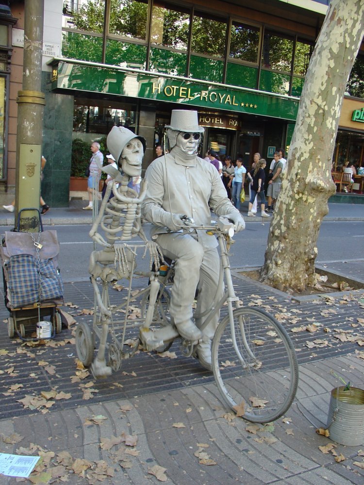 Уже в третий раз еду в Барселону. Вот жизнь пошла! Привезли опять на площадь Каталонии. Дали свободное время. Если на экскурсии про Гауди я пошел смотреть дома построенные Гауди, то теперь иду смотреть Кафедральный собор. Дошел до этого собора - ничего интересного, свернул на перпендикулярную улицу и через некоторое время вышел на бульвар La Rambla. Полюбовался мимами, сфотографировался на память - очень интересно. Мне вручили брошюрку-приглашение на посещение музея эротики. Я про него тоже где-то в Интернете читал, что это очень занимательный музей. Некоторые фотографии на этой брошюрке, конечно же, впечатляли: фаллос в человеческий рост, «кресло удовольствий» и многое другое. Посетить его, безусловно, стоило, однако времени на это у меня, к сожалению, уже не было - в быстром темпе я возвращался к стоянке автобуса.